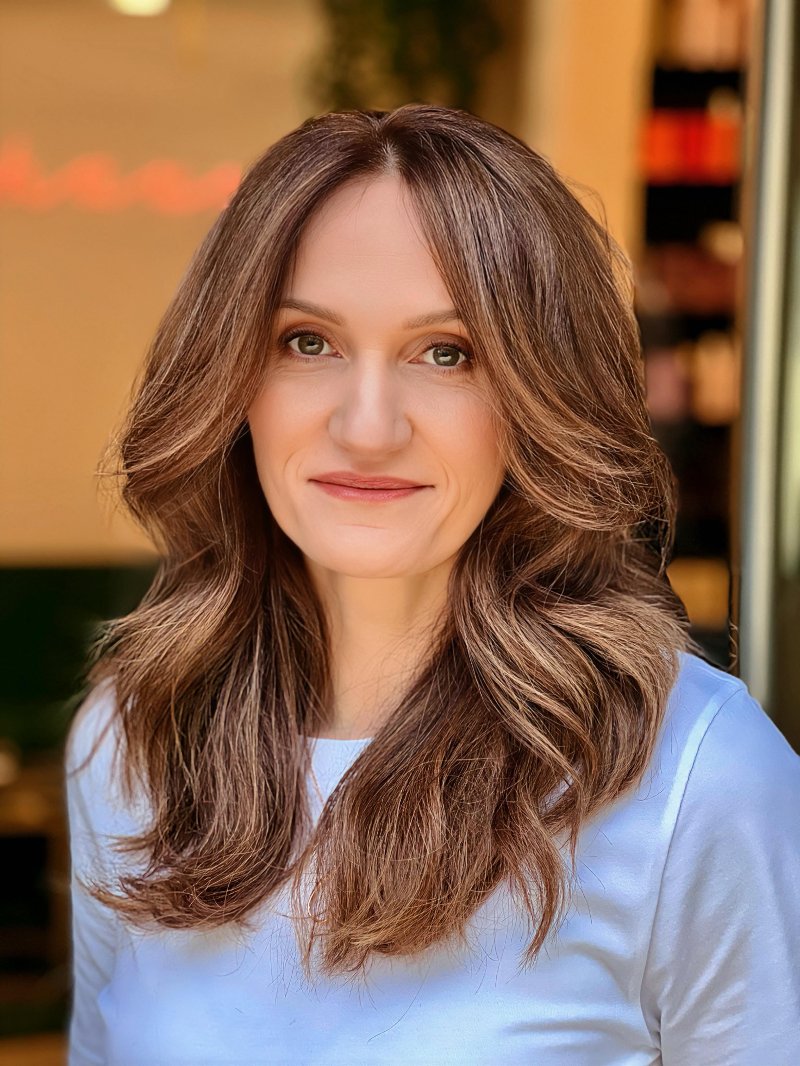 Ich mache diesen wunderbaren Job seit mehr als 30 Jahren. Ich habe die Schule für Friseure und Kosmetikerinnen abgeschlossen. Sie besuchte Schulungen und Seminare, um die Techniken des Schneidens, Färbens, Balayaga und der Haarpflege zu perfektionieren. Ich hatte die Gelegenheit, beim Fernsehen und beim Film in der Videoproduktion zu arbeiten. Arbeitete und lebte 20 Jahre lang in Belgrad und in der gesamten Balkanregion. Ich lebe seit 5 Jahren in Wien. Ich mag immer noch meinen Job, dass ich einen Menschen schön machen und den Tag zumindest ein bisschen schöner machen kann. Ich besuche gerne weiterhin Aus- und Weiterbildungen, denn die Beauty-Branche hört nicht auf. Und es macht mir immer noch Spaß, neue Techniken und Materialien für das Färben, Balayage, Haarschneiden und Styling zu entdecken. Borislava